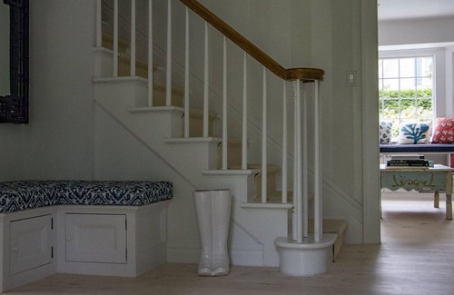 Beautiful home located in the heart of historic Quogue Village, whose Main St. features an art gallery, home goods store, ice cream/toy store, diner, small food market and a few clothing stores. Home is fresh, light and comfortable featuring two wood burning fireplaces, a beautiful chef's kitchen with wine fridge and Nespresso machine, a large rec room with a flat screen tv, pool table and game/toy closet, an open plan living/dining room, a sunken sunporch, an office with printer, 7 bedrooms, 5 and a half bathrooms, a mud room with large washer and dryer, enclosed garage for bikes, central air conditioning, wifi and Sonos sound system throughout the house. Shaded front porch with deep comfy couch and chairs. Large heated pool and jacuzzi. Outdoor fire pit. Bikes are also available. Daily or weekly cleaning can be arranged. Home is walking distance to the Hampton Jitney bus stop to NYC, a five minute (or less) car ride or ten minute bike to the beach and a 10 minute drive to the Long Island Railroad with express service to NYC, Montauk and a connection to JFK airport. 90 minutes to NYC by car in normal traffic, train to NYC in 95 - 120 minutes.
