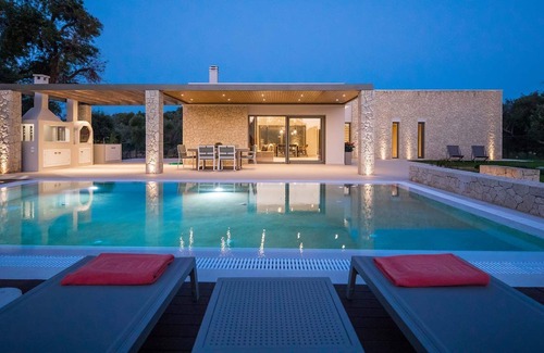The creation of lasting memories is guaranteed, Natumo luxury Corfu villa combines modern design with the feel of a nature inside and out. Located in the southwest of Corfu, a quiet area of natural beauty and authentic Corfu living, Natumo is a paradise retreat at the foot of a mountain surrounded by olive groves and citrus orchards. Experience the unique Corfu lifestyle in this outstanding villa for up to 6 guests. This luxury villa possesses a striking exterior and elegant modern design with top luxury comforts. The harmonious spaces were designed to give you a complete sense of privacy. The villa boasts easy access with private parking and is close to 3 traditional villages. You can even amble down to the beautiful, secluded beach under the villa.