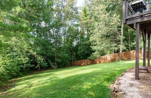 The light-filled rooms and open layout at Rabbit Ridge Retreat are conducive to spending family time together. Gather by the gas fireplace in the living and dining area, or head downstairs to the recreation room for a game of foosball and a movie on the 65" Smart TV. There's plenty of sunshine on the back deck where you can enjoy nice views of the surrounding woods. In the evening, retreat to the main suite for some quiet solitude - the bedrooms are delightfully private! This Asheville vacation rental is located in Weaverville and is approximately 17 minutes to downtown Asheville.