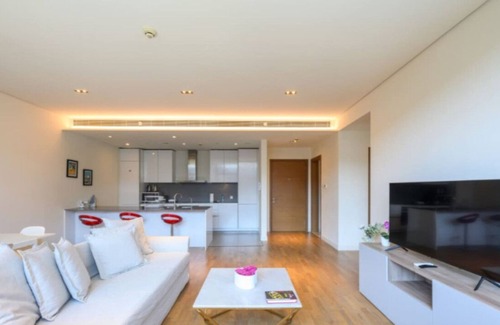 Located in Dubai's most upscale area, our modern one-bedroom apartment is a luxurious haven for up to four guests. Guests are treated to complimentary amenities including access to a beautiful swimming pool, a well-equipped gym, and fast Wi-Fi, ensuring a worry-free stay.