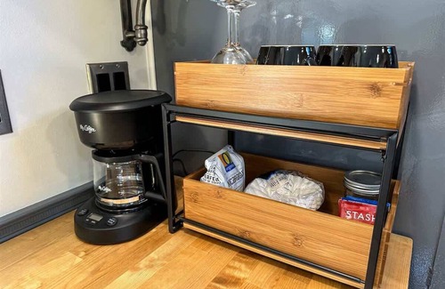 A few steps away, you'll find a beautifully designed private bathroom / laundry room in a separate building, offering modern fixtures and a spacious shower, maintaining the balance between rustic charm and contemporary convenience. Despite that, there is a tiny bathroom inside the caboose for your comfort. There is a beautiful deck on the side to enjoy the sunshine.