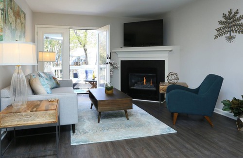 AvenueWest Raleigh offers this masterfully tailored townhome is purposefully separated into two elegant and spacious suites to create two unique settings that your clients can relish in privacy. Each bedroom contains well-dressed queen beds with memory foam mattresses, organic sateen duvet covers with soft layers of vibrant color, and roomy closets. Should clients need a crib or Pack N Play, we can also provide this option as well for families. The upstairs suite has the unique amenity of a hidden bar and wine cooler to complement any relaxing evening. We also have a spectacular view of the 12th hole equipped with a large outside heater available our guests to enjoy even on those chilly winter days. Guests will have full access to the 18-hole golf course (for a small upcharge), two large swimming pools (one contains a kiddie wading pool), a playground, two tennis courts, and fitness facility. At AvenueWest Raleigh, we offer the convenience of a hotel with the luxury and space of home.