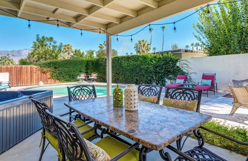 NEW LISTING! JUST ADDED TO VRBO! This is an ideal Desert getaway for a couple or small family. This private, stand-alone Rancho Mirage house features mid-century design, a pool & hot tub, mountain views both back & front, and privacy from all directions. The home is light, bright & airy inside with a circular driveway, car port, grass front yard, iconic mature palm trees, and landscaping in both front and back. The house is welcoming while giving guests the luxury of privacy both inside and out while maintaining natural light from both north & south. The large front yard features a front patio with mid-century furniture to sit outside and enjoy spectacular mountain and palm views. In the backyard, the clear & bright pool features outdoor furniture for sun bathing, barbecuing, or eating at the large stone table in back. Then, in the evenings, relax with a glass of wine while taking a swim or roll some putts on the custom putting green all while enjoying mountain vistas and tranquility that only the desert can offer. Inside, you will find a large living room with period-correct mid-century furniture, furnishings, and artwork. The dining room features a large oval dinner able that seats six for a dinner party with friends. The kitchen has everything you need to cook in including a modern stove & range, full-size stainless steel refrigerator/freezer, as well as a new washer & dryer and movable kitchen island with a stocked spice rack. Next is the family room that features a low profile white leather mid-century sectional sofa, Relax the Back premium leather Zero Gravity lounge chair, wine rack, and hutch. The TV has DirecTV Stream loaded with channels in addition to Apple TV, Roku, and any way you want to stream. The Master bedroom has a king-size bed, and is flanked by Danish wood side tables & matching dresser. The guest room features a comfortable queen bed, night stands, dresser and leather sofa. Both rooms have flat-screen televisions. The Master bathroom has a shower while the guest bathroom has both a shower and bathtub. Both showers are glass enclosures. Come stay at your Desert Private Getaway in the most desirable of all Rancho Mirage neighborhoods. Due to Short-Term rentals that are not allowed in Rancho Mirage, monthlong or longer are the only rentals allowed in the home. Note: guests are responsible for all utilities during their stay, so pool heating is the choice of the renter. Please write for more information.