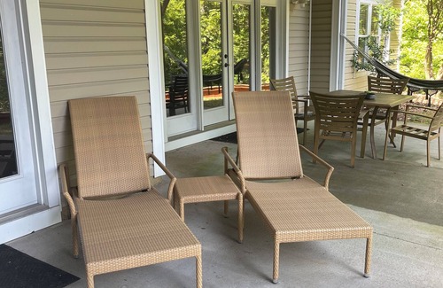 The Arcadian is the epitome of a peaceful lakeside retreat. This stylish home is nestled at the end of a quiet cove where blue herons are neighbors and wildlife abounds. Main level master with huge en suite bath, & 1/2 bath on main. Basement has 2 queen bedrooms with jack & jill bath, 1/2 bath, and sleeper sofa. Enjoy The Arcadian’s tree lined upper deck, covered lower deck, or the “soak up the sun” mid deck.