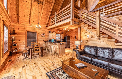 This easily accessible mountain retreat features central heat and AC, a large open space living/dining room with leather sofa, flat-screen smart TV, electric fireplace, WiFi, fully equipped kitchen with stainless steel appliances and granite counter tops, large bathroom with a combination clawfoot tub/shower, large master bedroom and a loft area with a game room including a retro style cocktail arcade with 60 classic games and a foosball table.