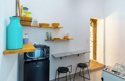 GeneralHair dryer, Number of bedrooms - 1, Microwave, Toilet paper, Stovetop, Bathtub or shower, Towels provided, Number of living rooms 1, Air conditioning, Free toiletries, Number of bathrooms - 1, Mini-fridge, Cookware, dishware, and utensils, Private bathroom, Heating, Kitchen, Desk, Balcony, Courtyard view, Oven, Bed count minimum 2, Bed count maximum 2 |