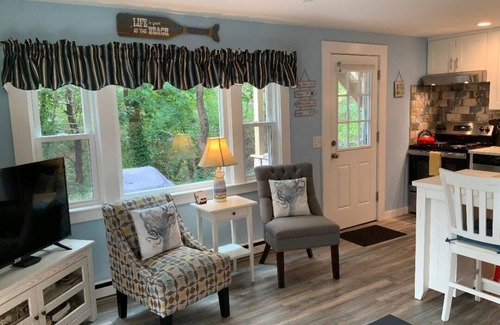 Guests are sure to enjoy a memorable vacation in this first floor, newly decorated, fully furnished, 2 bed, 1 bathroom condo. The kitchen and bathroom have been newly renovated. Two comfortable queen beds await! Window AC's and ceiling fans are in both bedrooms. The spacious living room is fully furnished and is equipped with a ceiling fan. It features a sliding door leading out to a private deck . The kitchen is perfect for dining as it is fully equipped with a dishwasher, microwave, stove, fridge, toaster, coffee maker, cookware and cafe/bar height dining table. A gas grill for your exclusive use is provided outside. A coin operated laundry is located in the basement.