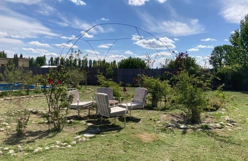 This refurbished, 100 year old adobe home has all the charm of yesteryear with all the comforts of today. Completely modern kitchen and bathrooms await you, 2 bathrooms en suite and one main bathroom. There are 4 bedrooms, including an upstairs loft. The grounds outside have extensive sitting areas, a swimming pool, roses, olive trees, all surrounded by vineyards. The area is a peaceful, agricultural area, yet only 15 minutes from town. Valle Grande and Los Reyunos are nearby.