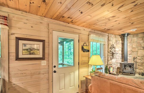 CABIN FEATURES: Creek/trail access, wood-burning stove (wood provided October-March), gas grill, outdoor dining area, ample lighting, hardwood floors, picnic pavilion & fire pit (shared)
