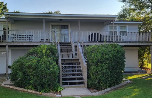 Deluxe King bedroom, 2 Queen bedrooms, 1 Double bedroom. All towels, linens, soap, shampoo, hair dryer, etc. provided. All you need to bring is food and drink! Complete kitchen with all utensils, microwave, oven, fridge, dishwasher, disposal and basics like salt and pepper, etc. Propane grill on the deck overlooking the water. Two bicycles, Jon Boat, paddles, life jackets. Boat can be tied up in canal right behind the house.