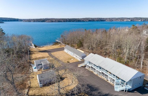 Let me tell you about our newly renovated studio, Le Petit Port, condo located on Linekin Bay in East Boothbay, Maine. Our condo is part of the small Water's Edge Condominium and Cottages community. This property has a beautiful lawn that goes right down to the ocean where you can enjoy amazing views and sensational sunsets! The dock has deep water access and there's no better place to eat lunch than on the dock overlooking the bay. It's a short ride to quaint Boothbay Harbor where you can shop and eat seafood to your heart's content! The 2nd floor condo main area has a king size bed, loveseat and kitchen area. It's approximately 325 sq feet. The new kitchenette has a refrigerator, sink, microwave, Keurig coffee maker, toaster oven and two burner hot plate. The bathroom includes room for clothes hanging, cabinet storage, toilet and shower. Just step outside the door to a covered outside deck with a view of the bay! The perfect spot for your morning coffee or nighttime dinner. There is also a guest laundry room just a short walk from the condo. My husband and I rented at Water's Edge two summers in a row and jumped at the chance to purchase this sweet condo on this amazing property! We hope that you will enjoy Le Petit Port as much as we have!