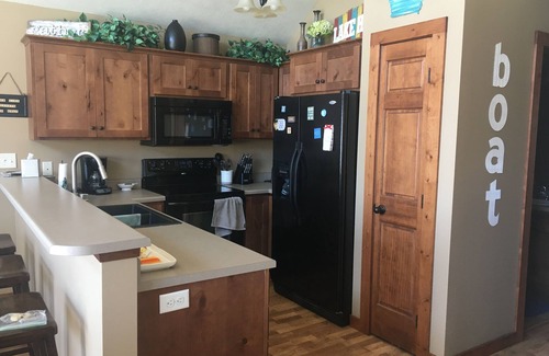 This is where summer memories are made! Privately owned cabin on the pond at Bridges Bay Resort with access to the many amenities the Resort has to offer. Ideally located right on the stocked catch and release pond and just a short walk to several pools, basketball court or zip line. Enjoy your six free daily passes to Boji Splash Waterpark right here at the resort. Float around the lazy river, shoot down the tube slides, relax in the spacious hot tub or enjoy the zero entry pool with your littles. Just outside the Waterpark is a newly renovated outdoor pool with picnic area. Our cabin sleeps eight comfortably with one king bedroom, 1 queen bedroom and two sets of bunk beds in the 3rd bedroom. We have most anything you need to enjoy your stay from a fully equipped kitchen, gas grill, yard games and even beach towels. All you need is your swimsuit, sunscreen and flip flops! There are three restaurants at the resort if cooking isn’t your thing. Blue Water Pizza, Water’s Edge Grill and Bracco’s. From casual dining to fine cousins all over looking beautiful East Lake Okoboji. Great place to catch a gorgeous Iowa sunset. While you’re here venture off the resort and check out Arnold’s Park, the concerts and fireworks at Preservation Plaza, The Emporium for your Boji shopping experience, Barefoot Bar, public golf courses, mini golf and an exciting night life. We’re certain you will enjoy your time and the memories you make!