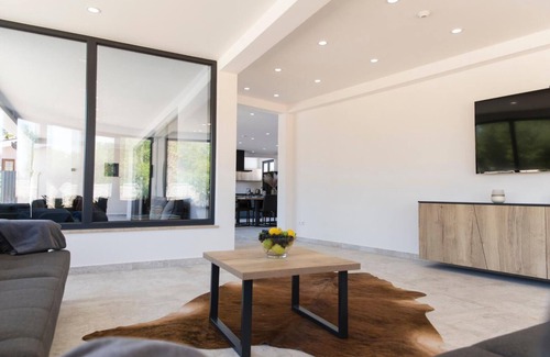 House has 2 bedrooms with big living and dining area and modern and totaly equipped kitchen. House is suitable for 4 adults, plus max 4 children that can ackmodate in living room on 2 double sofas.