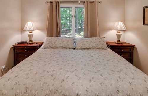 Enjoy a Peaceful Retreat in this Wonderful Home! The Sunroom offers a Full Body Massage Chair, guaranteeing total Relaxation while you take in the Serene wooded views or catch up on your favorite shows on the Large TV. There is a King Bed in the Master Suite, and the Master Bath offers a walk in Shower with a Bench. The Second Bedroom offers a Queen Size Bed and there are 2 Single Beds in the Third Bedroom. The Kitchen is well stocked, making meal times easy! Don't feel like cooking? Venture out to one of the fun restaurants offered here in the Village or right outside the West Gate. There is also a dedicated work space with a printer for your use.