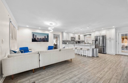 LUXURY: Guests can enjoy the entire home with 3 total bedrooms and 3 total bathrooms. Two bedrooms are masters and on opposite sides of the house. No sharing bathrooms in this house! The kitchen has been fully remodeled with a large island overlooking the entire living area of the house -- the chef will never feel left out. There are two 65" TV's in the living areas so you don't have to fight over football or cartoons! Did I mention all furniture is brand new?!
