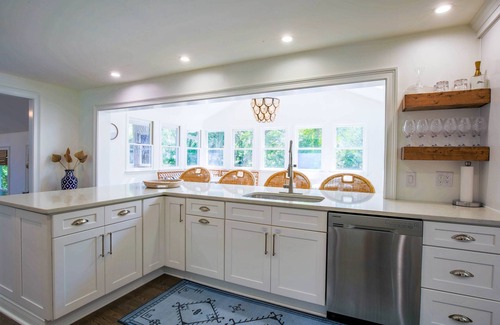 * Outdoor BBQ grill and two dining tables (banquette in the kitchen and table in the dining room) make it easy for dining in.