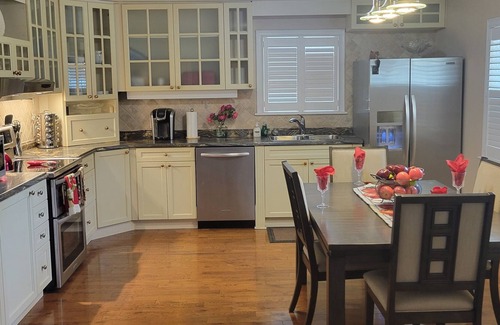 Experience the ultimate vacation in our stunning house surrounded by apple trees. With an infrared sauna, treadclimber, and home gym close to Lake Erie boat launch and beaches, this house sleeps 6 guests comfortably. Enjoy an open-concept living area with 3 bedrooms, all featuring queen-sized beds, full dressers, and spacious closets. Large open kitchen with higher-end appliances. Book now for an unforgettable getaway