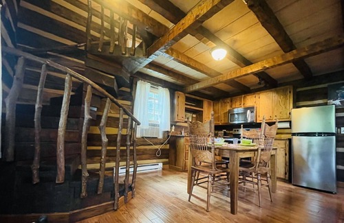 Come be our guest in this authentic log cabin in a very peaceful setting that is a truly unique experience . This 100+ year old cabin was disassembled from an old holler in Madison County and lovingly rebuilt by local craftsmen. Step back in time while enjoying modern conveniences. The beautiful French Broad River is a short walk from your front door. Pet friendly!