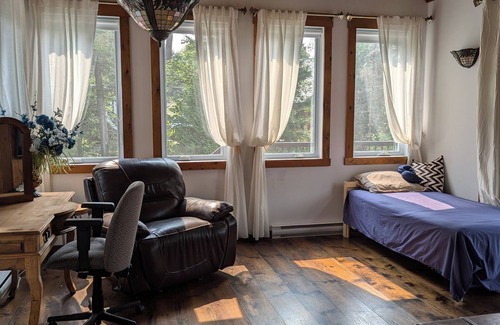 You'll find a kayak, golfing, and more on site at this family-friendly chalet. Thanks to the convenient onsite parking, you can either leave your vehicle behind and enjoy a short 5-minute walk to Le P'tit Train du Nord, or easily tackle the 9-minute drive to Mont-Blanc Ski Area.