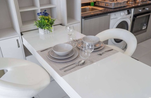 The open-plan dining and sitting area features a smart TV, perfect for relaxing after a day at shopping at My City Centre Al Barsha. The kitchen includes a washing machine for your convenience, and we provide hotel-grade bed linen and towels, along with initial toiletries like shampoo and soaps to ensure a seamless arrival.