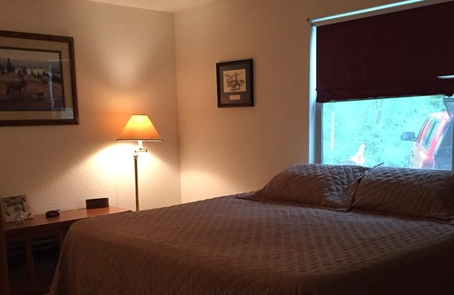 Clean comfortable 2 bedroom, 1 bath cabin within close walking distance to year-round geothermal pool, golf course, pickle ball court and clubhouse in Terrace Lakes Resort. Cabin will accommodate 6 people with 1 king bed, 2 twins and a sofa sleeper. Amenities include microwave, washer/dryer, fully stocked kitchen, TV, & internet .