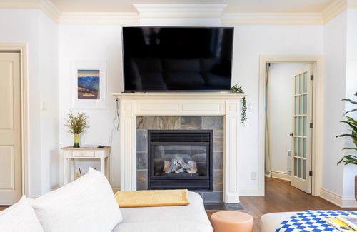 One master bedroom (queen bed) on the main floor with an ensuite bathroom (bathtub and shower). Two bedrooms on the second floor, one with a queen bed and one with two twin/single beds. There's a full bathroom on the second floor and a powder room on the main floor.
