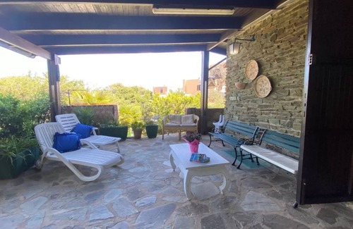 This spacious apartment is located in the quiet Roccaruja area, just a short walk from Gabbiano beach and the famous Pelosa beach in Stintino. Set in a green Mediterranean scrub environment and clad in typical “Stintino” stone, it features a large living area with a sofa bed, a separate kitchenette, a master bedroom, a second bedroom with bunk beds, and a bright bathroom with a shower. It comfortably accommodates up to 5 guests. The property includes a furnished veranda, a large garden with sun loungers, and a reserved parking space, which is very convenient given the proximity to one of Sardinia’s most beautiful beaches. The apartment offers all modern comforts such as TV, washing machine, Wi-Fi, oven, microwave, outdoor shower, and barbecue to ensure a pleasant stay. Gabbiano beach is only 350 meters away and offers both equipped and free areas. Pelosa beach, known for its white sand and clear water, is also nearby. This apartment is ideal for families with children, thanks to its safe location and spacious outdoor area where kids can play freely.