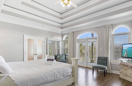 Second Floor: King Master Bedroom with Walk-In Shower and Soaking Tub + Balcony Access, King Bedroom with Two Twin Beds and Tub/Shower Combo + Balcony Access, King Bedroom with Twin and Twin Trundle + Walk-In Shower and Balcony Access.