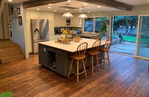 Located in desirable Camarillo Heights, located just a 5 minute walk away from Camarillo Village Square, which boasts over 40 shops including Starbucks, Sprouts, Planet fitness, Petsmart, Big 5, Rite Aid & more. This newly remodeled 5 bed, 2.5 bath open concept, inviting and spacious. Free WiFi, outdoor fire pit, Smoker/ BBQ, Cook's kitchen, fireplace & central ac/heat. Enjoy fresh eggs from our chickens & fresh veggies, fruits & herbs from our organic garden!