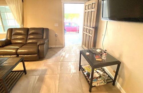 Spacious living room and New kitchen appliances. Whole house recently renovated with a new central and cooling system. Has a tankless water heater. Perfectly cleaned, low maintenance tiles flooring.