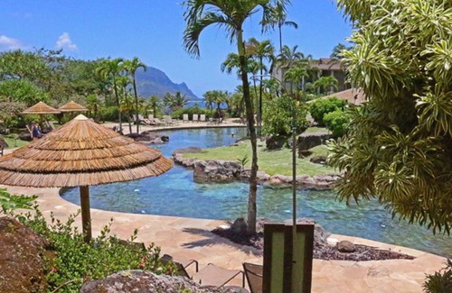 Hanalei Bay Resort is one of the premier properties on Kauai. Nestled on 22 acres along the beautiful coastline of the North Shore, the resort abounds with tropical foliage and amazing views of the green mountains, waterfalls, tropical sunsets over Bali Hai, and the beautiful blue waters of the Pacific Ocean. In this spot overlooking Hanalei Bay, you'll be steps from a white-sand beach located below the resort.