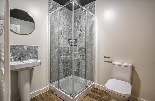 Moving to the Family Bathroom, you'll discover all the essentials for a refreshing experience. From the toilet and shower cubicle to the basin and towel heater, every detail has been carefully considered for your comfort.