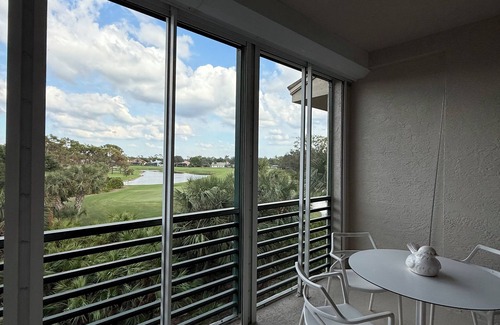 Breathtaking view overlooking Hurricane#9 in Pelican Landing! Your cozy getaway awaits in Bonita Springs at this charming condo. With 2 lovely king bedrooms, 2 bathrooms featuring a bathtub, and an additional office space with a welcoming futon, this retreat is perfect for guests looking for comfort and relaxation. Enjoy neighborhood amenities with your rental, including a private island for the beach, a canoe/kayak park on Spring Creek, tennis, bocce ball, pickleball, and much more! The condo is in mint condition and has been recently renovated with new floors, quartz countertops in the kitchen, master, and guest bathrooms. The kitchen will feature a brand new fridge and brand new kitchen accessories. Please pardon the appearance of some areas, as the finishing touches of furniture, such as side tables, nightstands, and lamps, are yet to be delivered. The owner has used the condo exclusively as his own (limited/part-time). A 2-month minimum is required—please inquire within for rates.