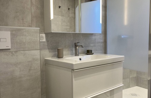 Bedroom 1 (level (-1/2) : 1 double bed for 2 people (160x200), TV and shower room.