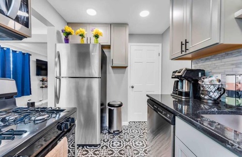 Your stay will take you to a freshly renovated 1,088 sq ft townhome in a duplex in charming Brooklyn. The home is perfect for mid to long-term stays and for guests such as traveling nurses and people looking to relocate to the area. You’ll have everything you need to feel right at home! As you step inside, you’ll be greeted a living room that exudes a warm and inviting atmosphere, with an L-shaped sofa that can also be a single sofa bed for lounging while enjoying your favorite shows on the wall-mounted Smart TV.