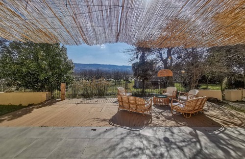Treat yourself to a peaceful stay in this renovated country house, located in Tulette, in the heart of the vineyards of Drôme Provençale. And facing Mont Ventoux, semi-detached on one side but without overlooking neighbours, it is ideal for families, with a capacity to accommodate 8 to 10 people.The house of approximately 140m² on 2 levels includes:• On the ground floor:oA spacious fully equipped open kitchen, with a friendly dining areaoA comfortable and bright through loungeoA utility roomoAn independent toiletAt the upper floor:o5 tastefully decorated bedroomso2 bathrooms with toilets.Exteriors & Equipment:• A wooden terrace with a gas barbecue for your summer meals• A private swimming pool, secured by an electric roller shutter• A covered terrace with a comfortable garden lounge• A clear view of the surrounding vineyards and countryside, for a 100% nature stayPlease note that a watercourse borders the property.A few minutes from the village of Tulette, between vineyards, olive trees and lavender. The perfect location to discover the vineyards, local markets and typical landscapes of the Drôme Provençale, while enjoying the tranquillity of the countryside.Please note that a deposit of €1,500 will be requested via our partner SWIKLY. This is a bank imprint that does not affect your spending limit. This link will automatically expire 20 days after your departure, unless damages are noted. As well as a holiday extension insurance (free document included in your civil liability).