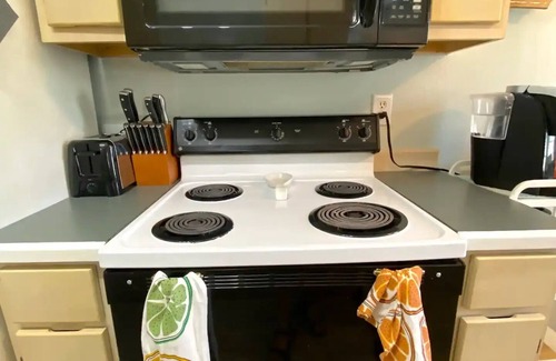 The accommodation has all that you need for your home away from home. The three bedrooms are all equipped with linens and ample closet space, also featuring two queen and twin bunk beds. Enjoy the private workstation in one room while the kid-friendly room features a custom Chalkboard wall. There are plenty of restaurants nearby; but if you are in the mood for a home cooked meal, the kitchen has all that you need to whip up your favorite meals.