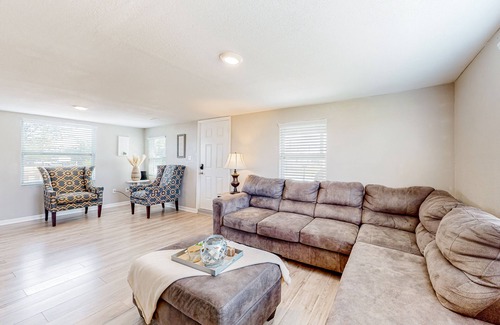 No matter what brings you to Florida's Emerald Coast, the home's updated interior will ensure your stay is filled with worry-free comfort. A plush sectional, board games, and a smart TV are ready to welcome casual downtime and family fun in the living room. The mighty full kitchen is more than equipped to handle anything from beach snack prep to three-course meal planning. A variety of beach gear and water toys are provided for beach-going convenience. You'll also find a private grill for backyard barbecues. Additional perks include central air-conditioning, free WiFi, and a private washer/dryer.