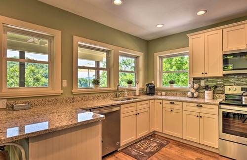 Perched on the shore overlooking Watauga Lake, this upscale retreat makes an easygoing home for your next getaway. The 4-bedroom, 3.5-bath vacation rental features an expansive deck with seating and water views, a bright modern interior, and a gourmet kitchen for cooking family meals. Launch your boat at a nearby marina for a day on the water, or explore area highlights including Bristol Caverns and Sycamore Shoals State Historic Park, while Pigeon Forge makes a great day trip!