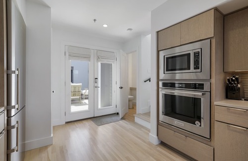 A staircase to the second level leads to a private primary suite with a window nook-perfect for curling up with a great book and enjoying the town and Gulf views. You’ll also find a TV entertainment center and closet storage in the primary bedroom adjacent to the beautiful, new, and spacious primary bathroom with a glass enclosed walk-in shower. The second bedroom is a twin bunk room also on this level with a private bath featuring a tub/shower combination accommodating two more guests. Also on this level is a private, open-air rooftop patio with two lounge chairs perfect for relaxing before or after your day at the beach. Lastly, just steps to the beach by way of the architecturally famous Seaside Coleman Pavilion, A More Perfect View offers way more than just a fabulously remodeled unit! For “A More Perfect” getaway, guests will delight in the prime location and sleek, new feel of this pristine residence in the heart of Seaside!