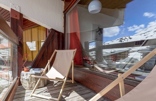 Furnished and equipped studio cabin for 4 people, fully renovated, with a surface area of 28m², located on the 4th floor of the Aiguille Rouge residence, with a south-facing balcony.
