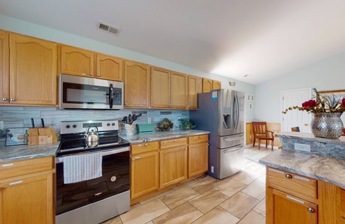 Renovated water-view house with private pool, hot tub, game room, & central AC is located in Wind Over Waves. Renovated water-view house with private pool, hot tub, game room, & central AC provides accommodation, featuring Barbecue/Outdoor Cooking, Child Friendly, Parking, among other amenities. This House features Barbecue/Outdoor Cooking, Child Friendly, Parking, to make your stay a comfortable one.