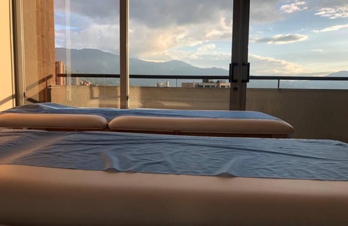 This 32m2 flat is located on the 18th floor of a well known residential building and has access to social areas such as gym, swimming pool, sauna and Jacuzzi. The furnished property has a high balcony overlooking the Poblado neighbourhood in Medellin, bedroom with double bed, TV, Wifi, desk, equipped kitchen, private bathroom and laundry area. It is close to the medical tower of the Tesoro Shopping Centre and the Rosario Clinic. We comply with Colombian regulations; check the house rules.