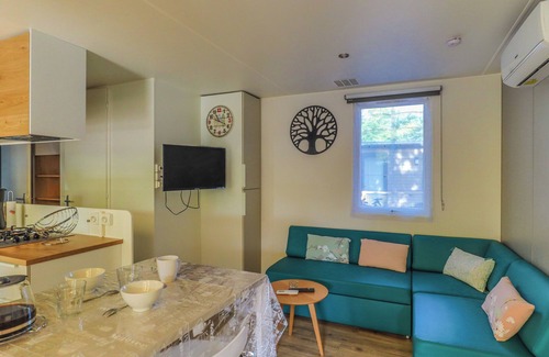 This spacious and modern 40 m² mobile home is the ideal accommodation for a relaxing holiday with family or friends. It can accommodate up to 6 people, including children and babies.
