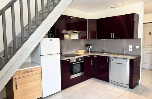 Accommodation: The agency offers this charming house, composed of 3 bedrooms, a few steps from the beach of Les Vallées and Pléneuf-Val-André (less than 1 km).You will enjoy its location, close to all amenities, casino, restaurants, shops and attractions during the summer. The seaside resort of Pléneuf-Val-André offers access to its large beach in the center bordered by a 2 km long walkway, reserved only for pedestrians.This house offers you:Ground floor:- A large bright living room with lounge (canopy, coffee table) and dining table for 6 people; - A fully equipped kitchen with: sink, induction hob, hood, oven, fridge-freezer, dishwasher, microwave, toaster, citrus press and coffee maker filter; - A bedroom equipped with a double bed (140x190cm) with duvet and pillows; - A bathroom with walk-in shower, sink and plenty of storage; - A laundry room with washing machine and dryer; - A separate toilet; First floor:- A first bedroom with a single bed (120x190cm) with duvet and pillows; - A second bedroom with a standard double bed (140x190cm) with duvet and pillows; Services offered as an option and by reservation :End of stay cleaning : 150 € (subject to the rules of procedure of the agency)House linen (not provided):1 double bed kit : 20 €1 single bed kit : 15 €1 towel kit (one small + one large): 10 €An autonomous arrival is expected after 6 p.m. and during the closing days of the agency. Key boxes are available outside the agency.