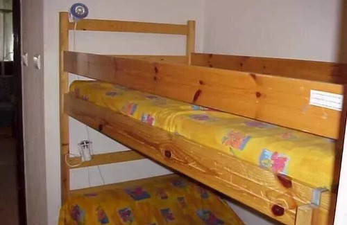 Accommodation: In the heart of the village, in the AURETTE residence with lift, apartment for 4 people composed of: Living room with sofa, TV and kitchenette equipped with 2 hotplates, sink, fridge, mini-oven, cupboards opening onto the East loggia. Sleeping area at the entrance for 2 single beds. superimposed. Separate sleeping area with double bed and storage. Separate baths and toilets. gerflex ground. Light pine furniture. 36 M2 approx. Spacious and comfortable apartment. Living room 15m2. Exposed is.
