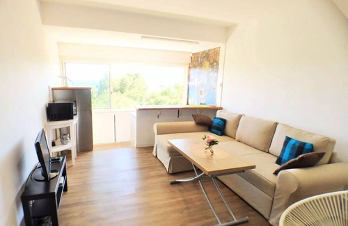 Accommodation: Studio of 30m2 in the heart of the seaside resort of the Sablettes, full sea and pine forest view, no screws, ideally located, All on foot...Beach, entertainment, shops and restaurants within walking distance!Boat-bus boat towards Toulon at 50 m.Bedding:-Convertible sofa in 160 cm (stay),-Additional bed in 80 cm (night corner)Equipment:-TV, Internet (fibre), air conditioning, washing machine-Bakeware (2 fires), oven, microwave, dishwasher, refrigerator and freezer, filter coffee machine, kettle, toaster,-Table and iron, rackWe accept holiday vouchers (depending on booking platform).Linen, towels and end of stay cleaning are not included, you can choose to include these services at the prices of: - limited use sheets for a bed in 160 : 20 €- Household end of stay : 40 €Non-smoking accommodation.Our friends pets are not allowed in this accommodation.