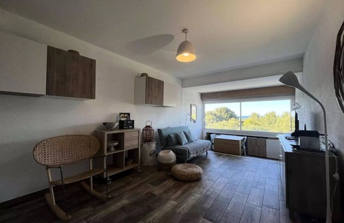 Accommodation: 32m2 air-conditioned studio for up to 3 people. This apartment is located in the heart of the spa resort of Les Sablettes. The beach, shops, restaurants and bus boat is within walking distance. On the third floor with elevator.Bedding: - Cabinet bed- convertible sofa 2 places in 140Equipment:- TV, air conditioning, washing machine- Cooking plate, extractor hood, mini multifunction oven, top refrigerator, coffee maker, kettle, toaster - Vacuum cleaner, table and ironWe accept holiday vouchers (depending on booking platform).Linen, towels and end of stay cleaning are not included, you can choose to include these services at the prices of: - Sheets limited use for a bed in 140 : 20 €- Household end of stay : 40 €Non-smoking accommodation.