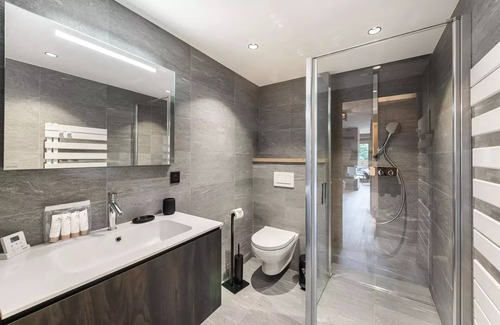 A 5-minute walk from the Mont d'Arbois cable car, close to the slopes but also to the bus stops, this property can accommodate 8 adults and 4 children. It consists of 4 double bedrooms, 1 child's bedroom, a spacious living room and a fitted kitchen. The home cinema room and the beautiful balneotherapy bathtub of the apartment will perfectly complement the wellness area of the residence (sauna, hammam, gym).