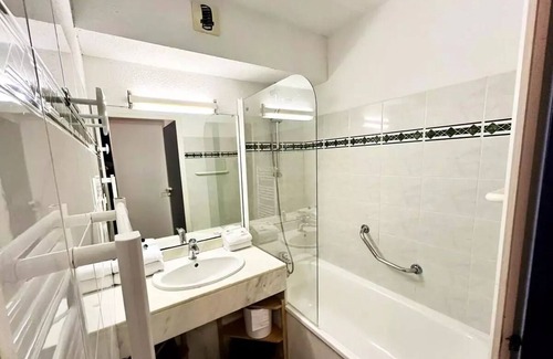 Accommodation: This apartment on the 2nd floor includes: - Kitchen area with 1 ceramic hob (two burners), refrigerator, microwave/grill, dishwasher, kettle and electric coffee maker - Dining Area - Large flat screen TV (TNT) - Office table in the living room -All beds are equipped with blankets, pillows and a mattress protector - East loggia, facing the swimming pool and the lake with garden furniture - Living room with 1 convertible sofa for 2 people (130 x 190cm) - 1 bedroom with 1 double bed (140 x 190cm) - Bathroom with bathtub and separate WC This apartment is not suitable for people with reduced mobility Within the residence: - Bicycle storage - Laundromat 24/7 Included in the rental: - Bed linen (sheets and pillowcases) - Towels: provision of 1 bath mat per bathroom and/or shower, 2 bath sheets and 2 hand towels during your stay. Additional linen or change and cleaning with supplement - WIFI access in Basic Access (consulting email and internet access). Full Access (consulting email, internet access and downloading documents and videos) from €5 to €25 depending on the plan and duration Reservation Conditions: - Security deposit of €250 per returnable apartment, less any damage caused, unpaid services or loss of keys. - For stays of 14 consecutive nights or more, the deposit is collected. - Arrival from 5 p.m departure before 10 a.m. To book on site: Additional covered parking space (subject to availability on arrival): €50/week Pet: 40€/week